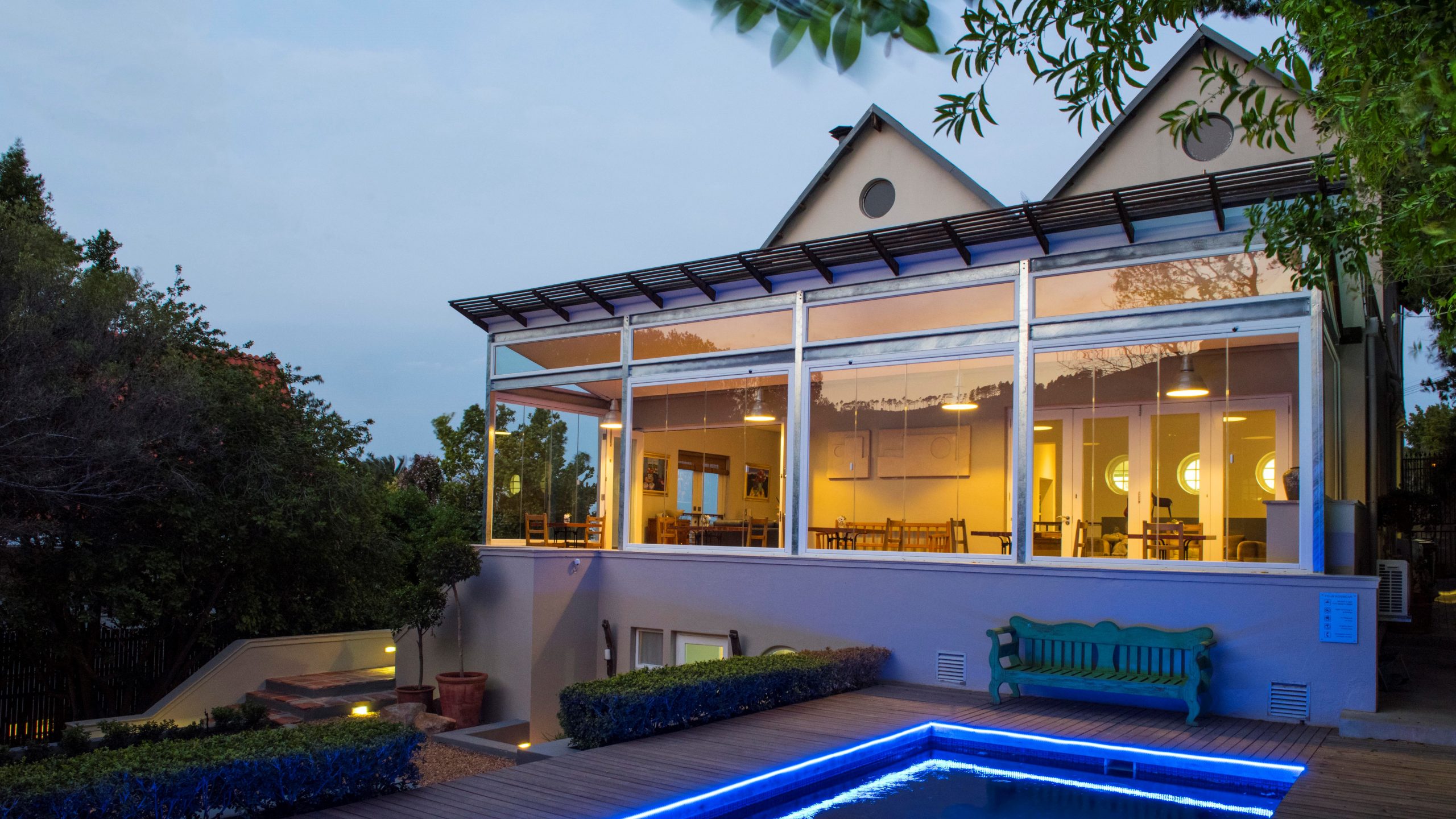Situated on the slopes of Table Mountain and 5 minutes by car from the V&A Waterfront, Kirstenbosch Gardens and Clifton and Camps Bay beaches. The guesthouse enjoys 360º views of the mountain, Lions Head, Signal Hill, Table Bay and the city. It is within walking distance of the city as well as vibrant Kloof Street, which is well known for its restaurant and café culture.