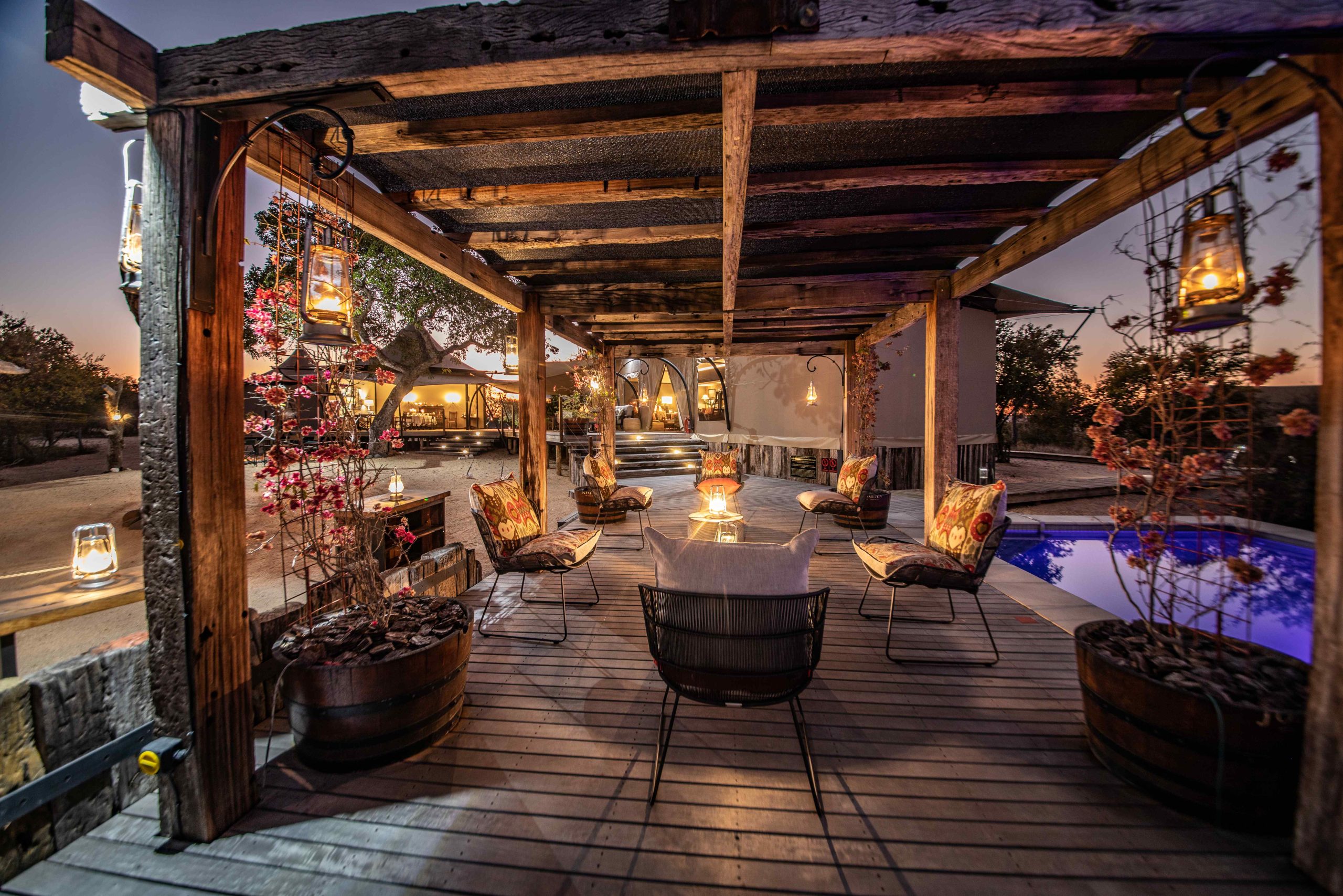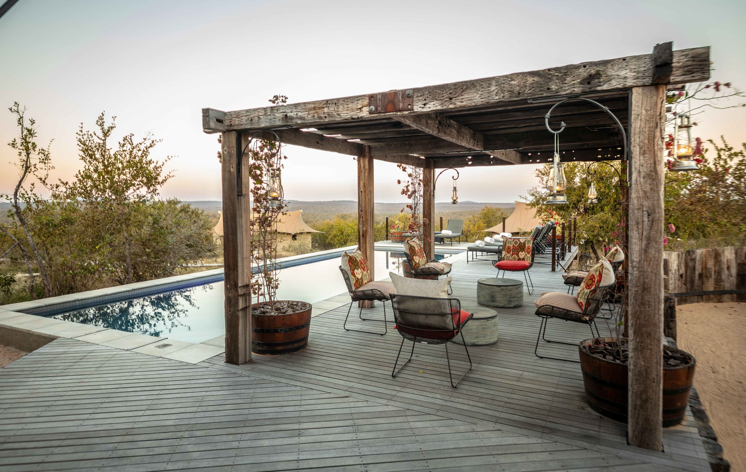 MCH offers family or friend groups a private and intimate bush getaway, perfect for extended stays. If not booked out for a group, individual couples are welcome to make it home for their luxury safari stay. Perched on a kopje (little hill), you can revel in panoramic views of the wild Makalali and Drakensberg Mountains beyond. The four tents offer air-conditioning and WiFi. They are fully en-suite with sumptuous bathtub and indoor and outdoor showers. Each features a well-stocked bar and indoor lounge that flows outside onto a private deck.