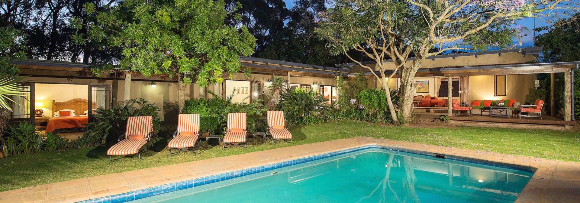 The Homestead is set in a remote and private part of the reserve. With seven spacious bedrooms, all en suite, a bar, swimming pool, satellite TV, playroom for children and spectacular views, it is the perfect lodge for the sole use of a group or family of up to 14 persons.