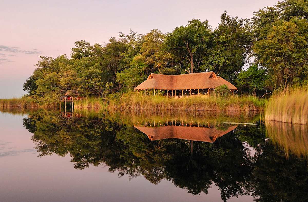 The stylish main buildings extend over the Khwai River and are set on raised platforms to maximise the views over the surrounding lagoons and islands. The elegant lounge and dining rooms, built of local timber, reed and thatch, feature a small library, expansive sundeck, plunge pool and sala with day bed. The fire-deck extends over the Khwai River and creates an enchanting environment in which to relax after dinner. There is also a larger pool with elevated sun deck in the expansive grounds. The prime location of Camp Xakanaxa (pronounced Ka-ka-na-ka) on the banks of the Khwai River on the Xakanaxa Lagoon, in the heart of the Moremi Game Reserve, makes it one of the very few safari camps that offers guests an authentic, year-round Okavango Delta land and water safari experience.